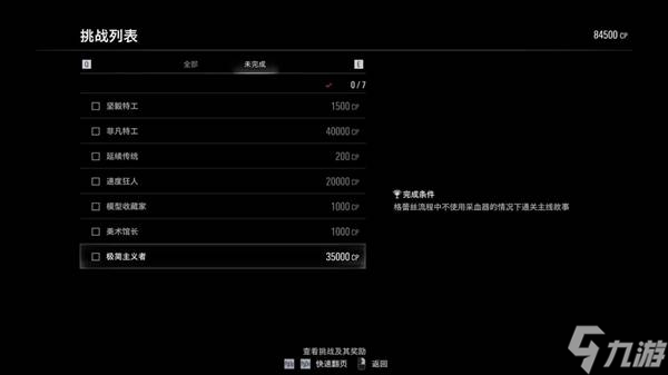 三周目做不采血+速通。有无限子弹,可以说速通手到擒来。采血器都别捡就不会误触了。不过还是时不时检查一下挑战列表。打完有5.5w,足够买无限火箭筒了或者无限斧头了。钱不乱花太多的话可以都买。四周目就随意了,看你喜欢怎么打癫狂图为我二周目通关时的挑战列表,所剩无几。点数使用情况如图所示。无限子弹+无限斧头+无限火箭筒=5+2+5=12,而我们的点数是8.5+5.5(三周目速通+不采血)=14,如果想买无限斧头,二周目开局的消费控制在2w内,不买就控制在3w内即可(做了最终谜题的话)如果没做最终谜题的话只有1w多,爱买啥买啥,不抠这点,不要像我一样过苦日子。