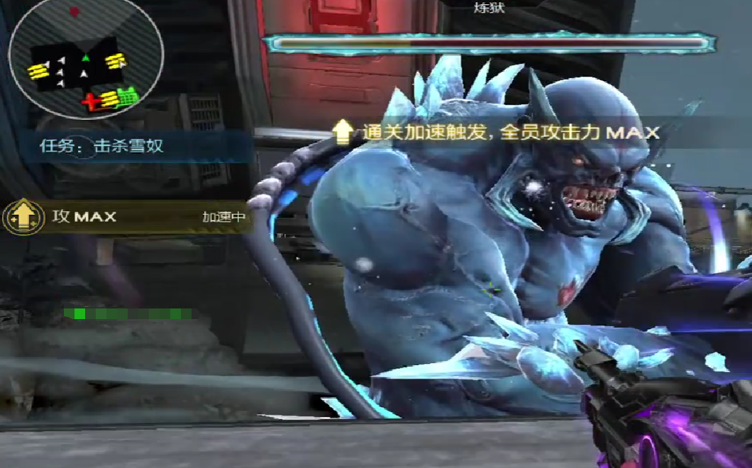 在狂暴阶段内,雪奴会有3种不同类型的攻击状态,它们分别是狂暴铁拳、激光炮、一击必杀,狂暴铁拳需要玩家根据boss的面向方向,进行预判,在boss面向某一个方位时,会停顿0.5秒左右,随后向前方进行攻击。