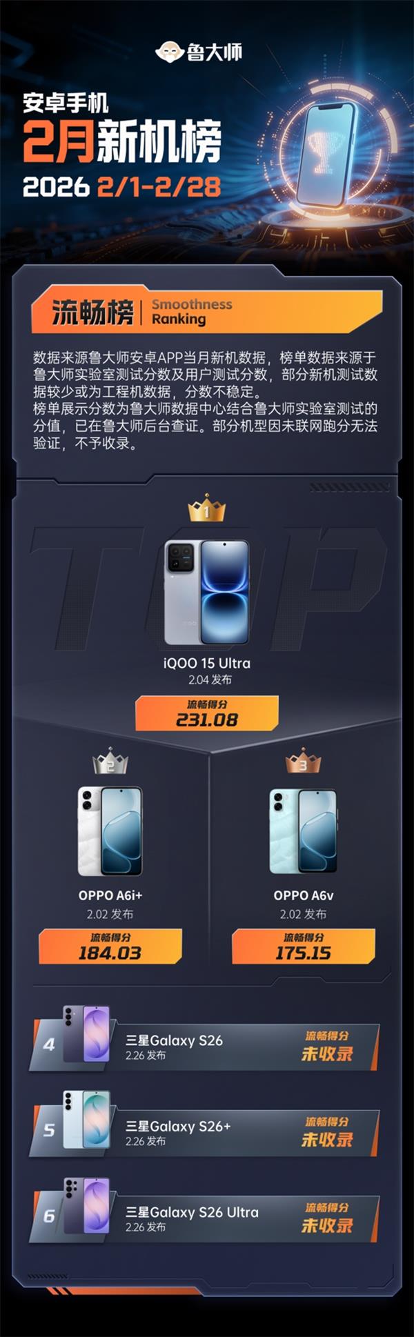 鲁大师2月新机性能/流畅/AI榜:iQOO 15 Ultra上演“性能屠榜” 三星“三机齐发”
