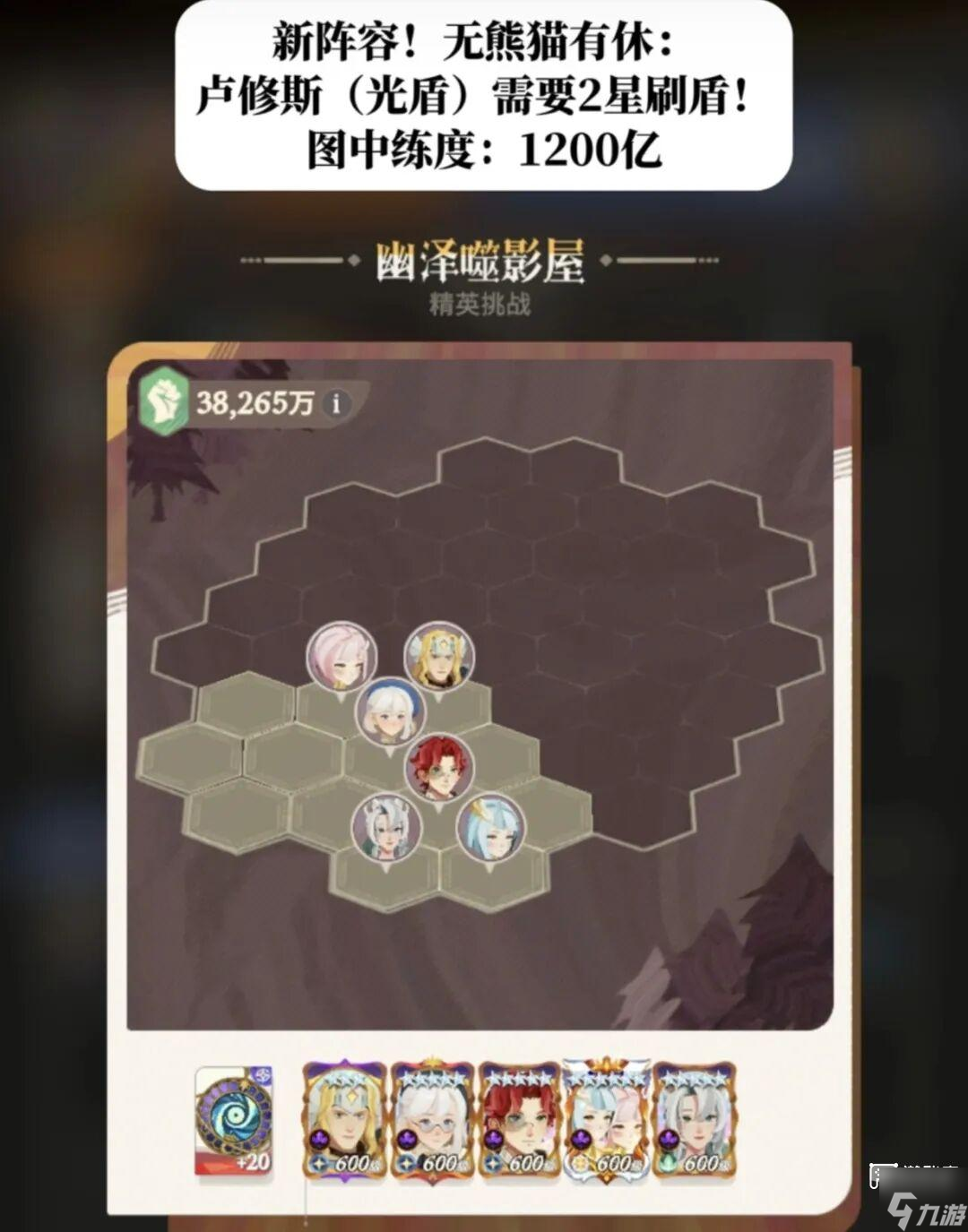 6、那重点给大家推荐一下无熊猫有休的这一套阵容,这里居然使用到了卢修斯!没错,就是这个开服到现在几乎没什么上场机会的光盾: