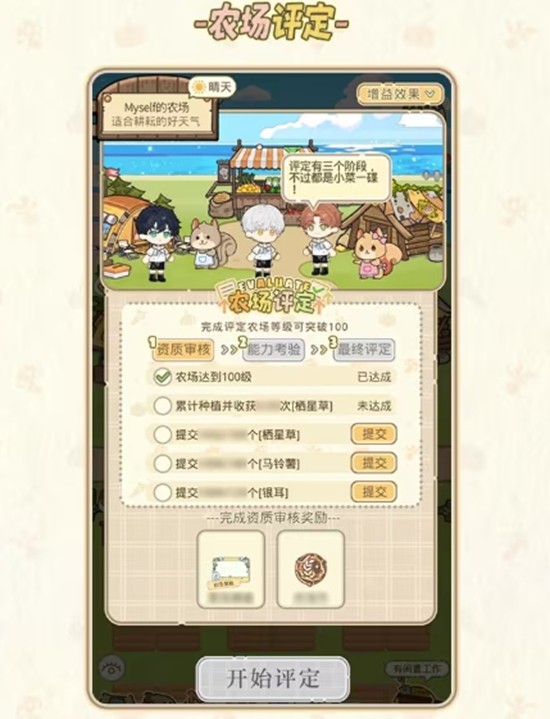 等级达到100级的玩家可触发【农场评定】,共分为三个阶段,完成最终评定即可突破100级上限!