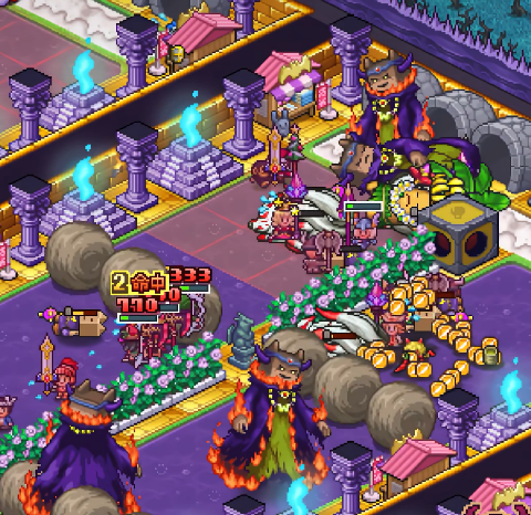 金币房的布局对纪念品店的收益影响也很大。房间的格局最好做成3乘4这种,能放进4只小体型的怪,这样冒险者进来既能消费又能被拖慢,变相让每个冒险者多走几个商铺。如果不放怪,冒险者很快就走过去了,消费次数少,总收入当然也少。不过金币房里的怪不需要多强,主要是起到减速的作用,前期随便放两只小怪意思一下就够用。