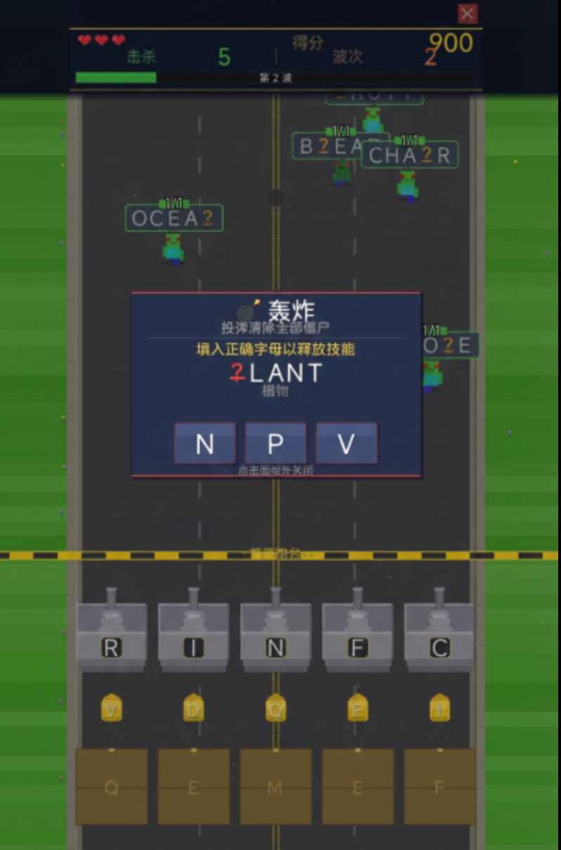 游戏的目标不但是打败僵尸。每次战胜敌人之后,就会补全单词得到分数以及技能点,这样的安排既可以增添游戏的趣味性,又可以促使玩家不知不觉地加强自身英语词汇的数量。无论是进行什么娱乐活动,或者是在学习英语的过程中,这些简短的游戏便可以带来不可预知的成果。对于有英语学习兴趣的玩家来说,在这些游戏中进行单词的积累,逐渐提高自己的语言水平是这款游戏的一个特别之处。