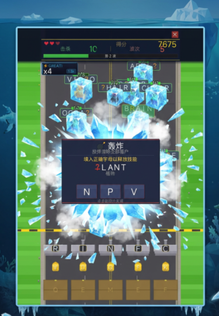 如果想要在打地久塔的时候获得一定的知识,那这款游戏就是最好的选择。它把学习和娱乐融合起来,在给用户营造出紧张刺激的战斗感的同时,在潜移默化中提高了玩家的英语水平。