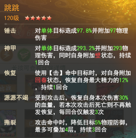 跳跳:物理抗伤核心,绝技开启物免护盾,站前排,专门对位敌方物理攻击目标,承担主要伤害