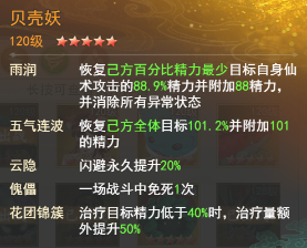 贝壳妖:群体回血核心,普攻+绝技双回血,站后排,与大草精形成双奶体系,保障全队血量