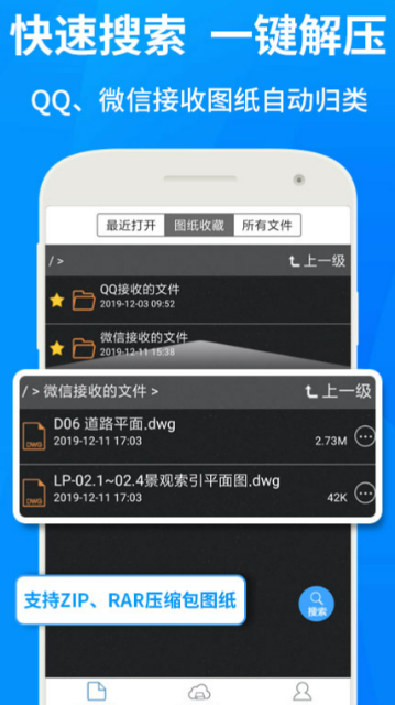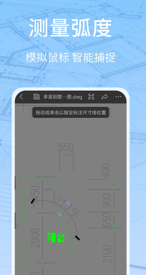 专为移动场景优化,体积精简、全程无广告干扰。兼容AutoCAD各历史版本及天正建筑格式图纸,渲染稳定,线条与图层显示无失真。提供基础测绘能力,包括线性距离、绝对坐标点读取及封闭区域面积测算;支持添加文本批注、图片标记及语音备注,便于现场问题即时记录;打通主流网盘账号体系,图纸上传下载无缝衔接;支持通过微信、QQ直接发送带批注的图纸副本,协作响应更及时。