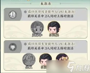 与共工、杨戬三人同时在一个队伍中上阵时激活,激活后羁绊伙伴生命提升15.0%。