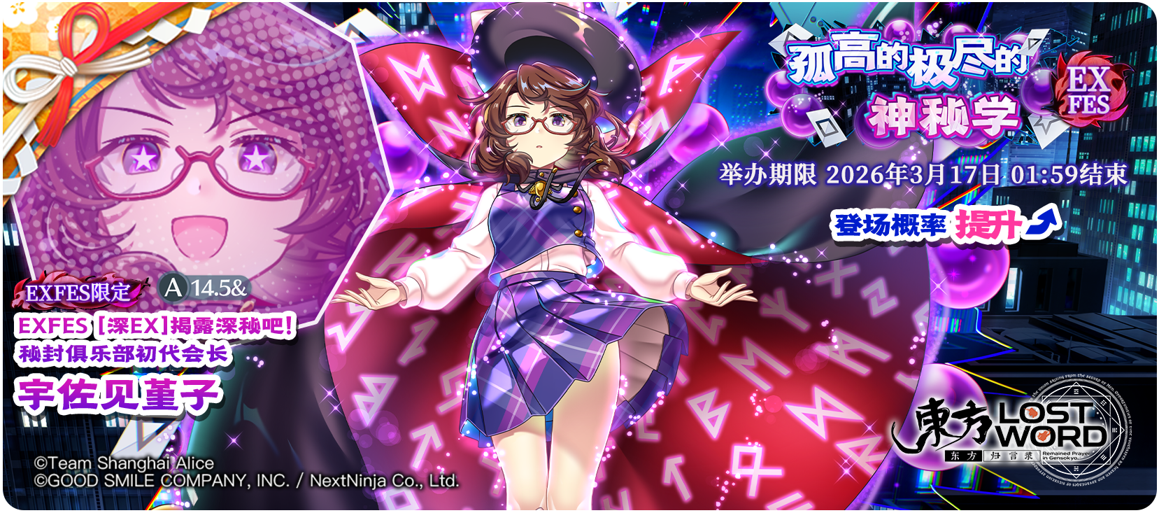 [深EX]揭露深秘吧!秘封俱乐部初代会长 宇佐见堇子登场概率提升的EXFES限定祈愿!
