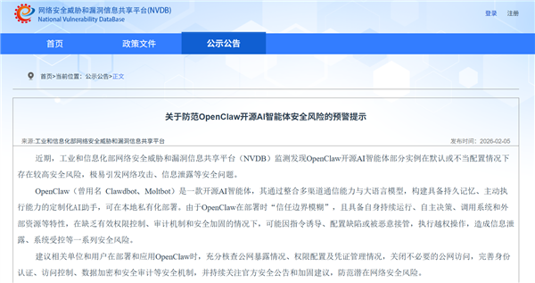 - 事关OpenClaw安全应用!国家互联网应急中心发布风险提示