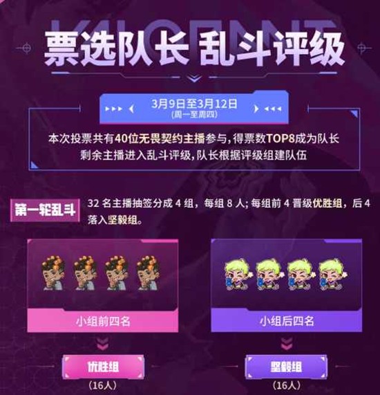 3月16日至3月22日,正赛淘汰赛正式打响!8支由玩家票选+队长钦定的战队将展开激烈角逐,共同见证源能杯冠军的诞生。