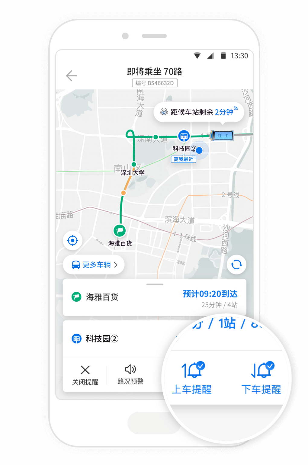 公交来了支持全国范围内使用,数据可以直接对接官方交通管理系统,误差可以维持在一分钟左右。大家再也不用担心会错过公交,只需要打开应用就能实时准确地查询到公交车的发车时间、到站时间,轻松掌握车辆行驶路线。乘客可以自由选择地铁、公交加步行模式,自动优化出行方案,为大家节省更多时间。上下车时,还可以设置语音提醒,避免坐过站的麻烦。
