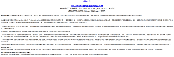 AMD在当年的新闻稿中自信表示:“1GHz AMD Athlon处理器正式开始出货,这标志着计算机行业迎来了一个里程碑式的事件。