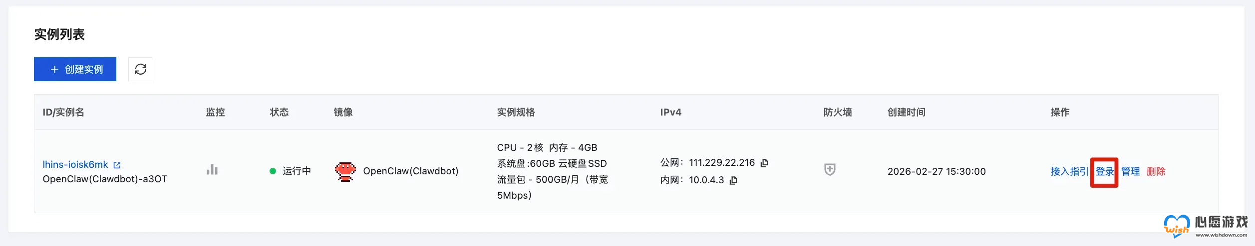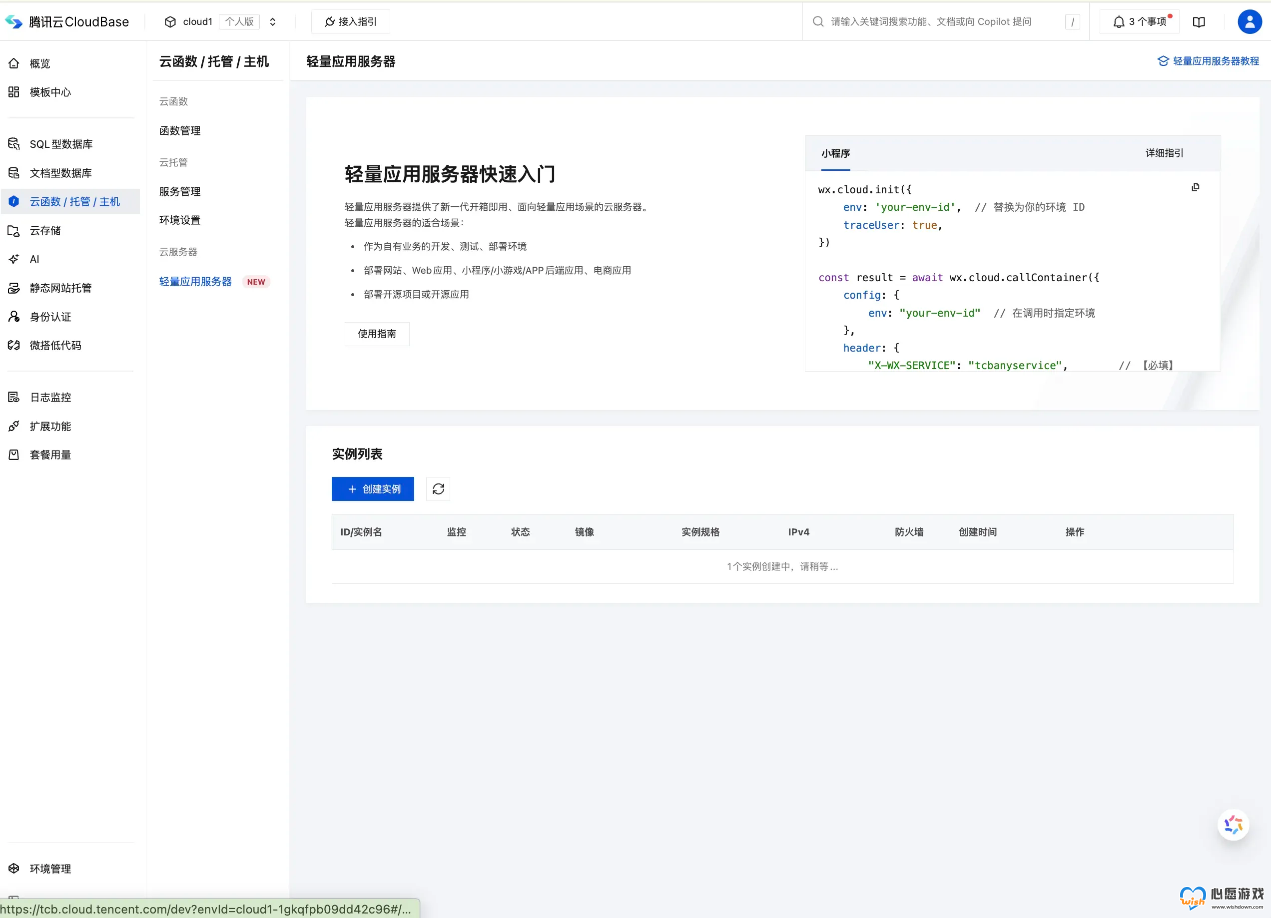 点击「创建实例」