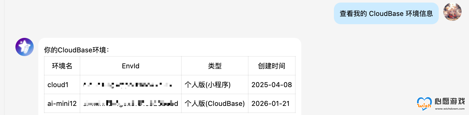 查看我的 CloudBase 环境信息