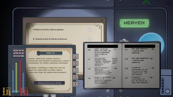你的工作很简单:审查逝者的生平,判断他们应得天堂还是地狱。但当公司手册要求你判无辜者死刑时,你将面临抉择:服从命令保护家人,还是坚守道德拯救灵魂?你的印章塑造世界,也塑造你的薪水!