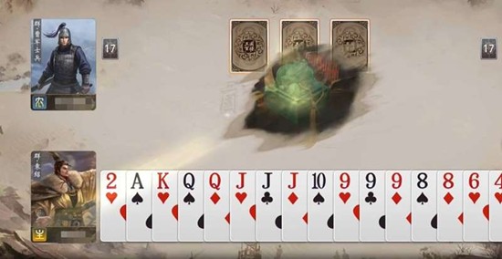 袁绍的威望技能是战役节奏的核心。 每次成功出牌都能获得1点威望,如果出牌未被对手压制,还能额外再得1点。这意味着玩家需要精打细算,通过连续打出小牌或顺子来快速累积威望值,同时消耗对手的手牌,为后续回合创造优势。掌握好威望的积累节奏,是控制整个官渡之战局面的基础。