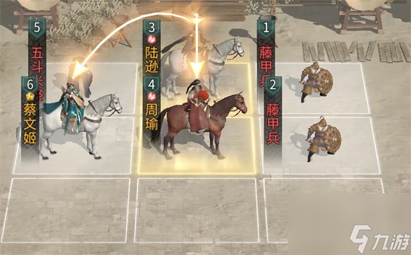 英雄站位:蔡文姬不站追击格,陆逊站蔡文姬的追击格,并与周瑜互站追击格。