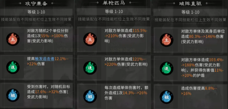 技能方面推荐选武力输出类的,像攻守兼备、单枪匹马、破阵直驱这几个都不错。如果拿的是典韦加许诸这个组合,攻守兼备是首选,其次考虑单枪匹马。士兵的话建议前排后排各选一个。前排可以选藤甲兵或者破阵兵,后排就选穿杨军、连弩军或者五斗米祭。