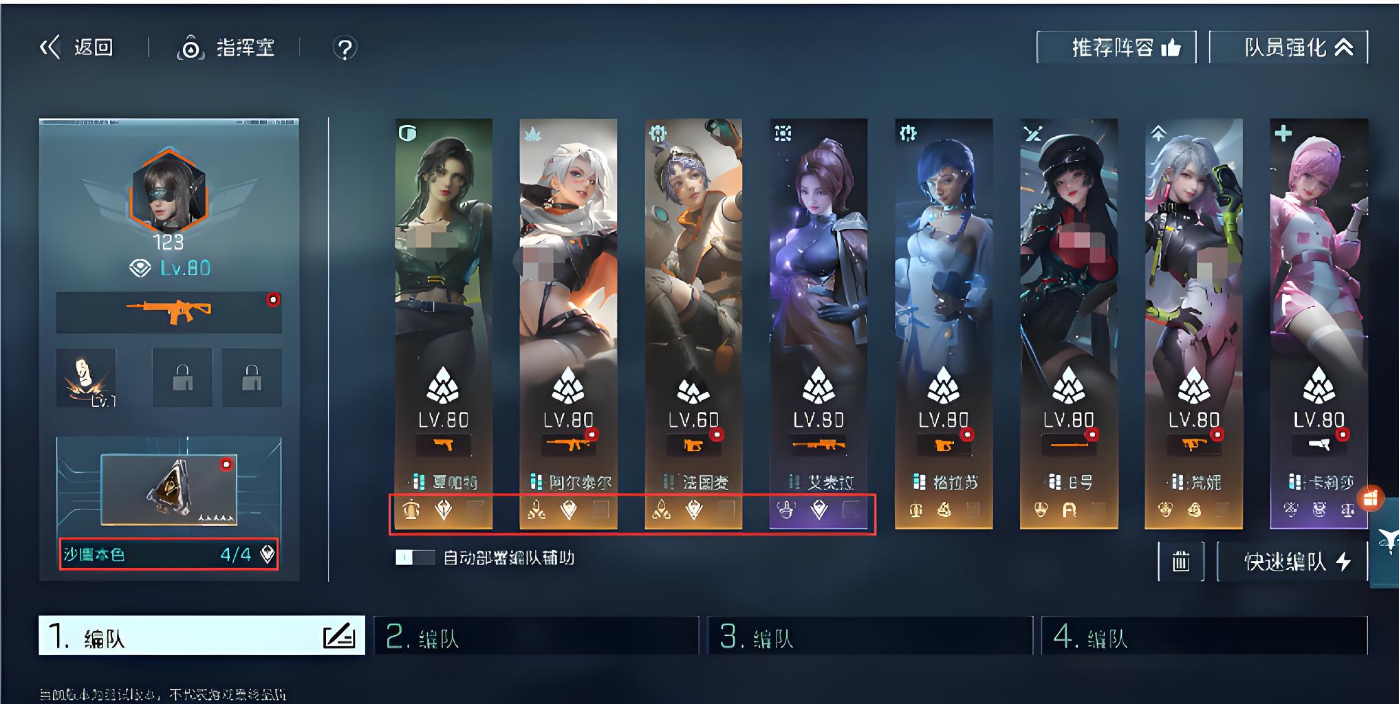 新手玩家们首先需要掌握模组的定义,模组就是编队buff增益,想要解锁增益就必须要满足激活足够的战术标相同队员,系统上每位队员都有专属的战术标,但是一定要注意每类战术标队只能有一个模组。对于新手而言,就可选择沙鹰模组,因为只需要4人组成就可激活,而且系统沙鹰标签的队员也十分的丰富。