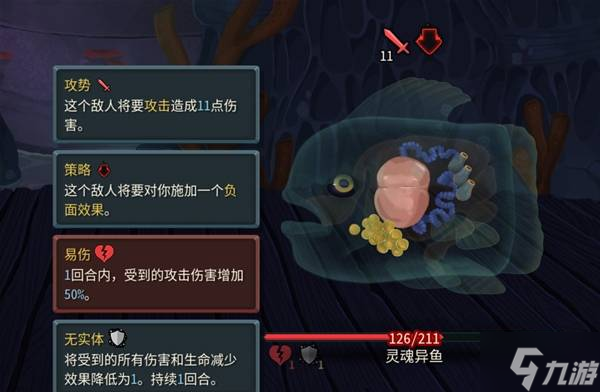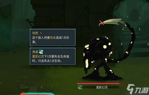 主要是有个滑溜状态,拥有9次被攻击强制变为1点生命值逆天状态,对于打单体爆发流派来说,这就是噩梦。同时会重击塞伤口,动画也很有意思,尾巴变长伸到我们的头上,也会持续成长加力量。
