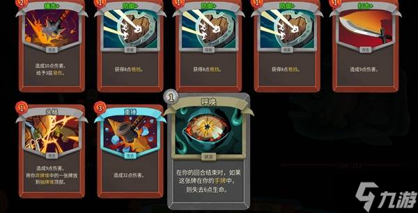 过程还会给你塞呼唤这个状态卡,在你的手牌不用每回合结束会直接扣你6点生命值,给萌系提个醒,这个是直接扣血条,格挡是没法阻止的哦。