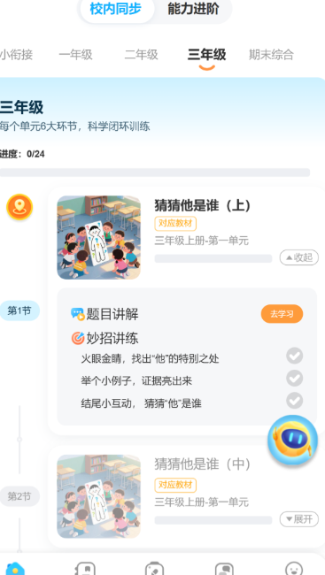 聚焦1—6年级看图写话专项能力进阶,采用游戏化闯关机制。练习难度梯度明确:从单幅图抓核心要素,到双图比对推因果关系,再到三图串联构完整事件链。所有图片素材同步匹配部编版语文教材单元主题与教学进度,课后即时巩固,学练无缝衔接。系统自动反馈表达完整性与逻辑性,助力孩子在正向激励中稳步提升写作自信与实操能力。