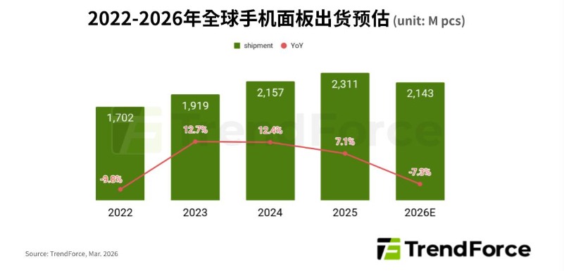 根据TrendForce发布的预测数据,2025年全球智能手机市场仍保持小幅增长。受中国市场补贴政策以及下半年传统销售旺季带动,全年生产量约为12.54亿部,同比增长约2.5%。不过进入2026年后,随着内存及存储芯片价格持续上涨,整机成本明显提升,预计全年手机生产规模将降至约11.35亿部,同比减少约10%。
