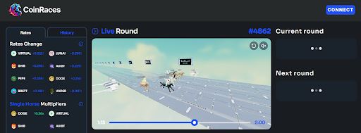 不确定如何参赛?CoinRaces为 桌面 和 移动设备 提供了详细的游戏指南,可在他们的网站或 GitBook文档 中找到。游戏很简单:您根据对代币在两分钟比赛中的价格走势预测来选择一匹"马"(迷因币或AI代币)。