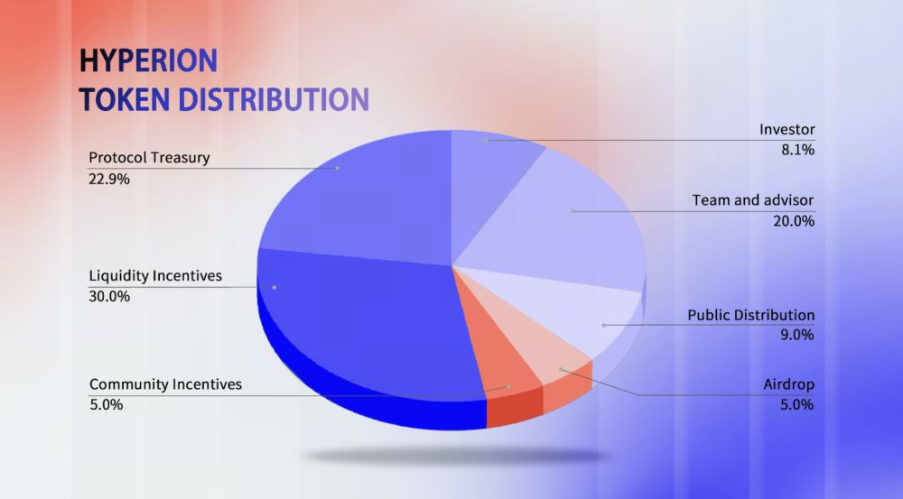 - 协议金库(22.9%):作为 Hyperion 协议的长期发展与可持续性预备资金,保留用于未来社群提案。