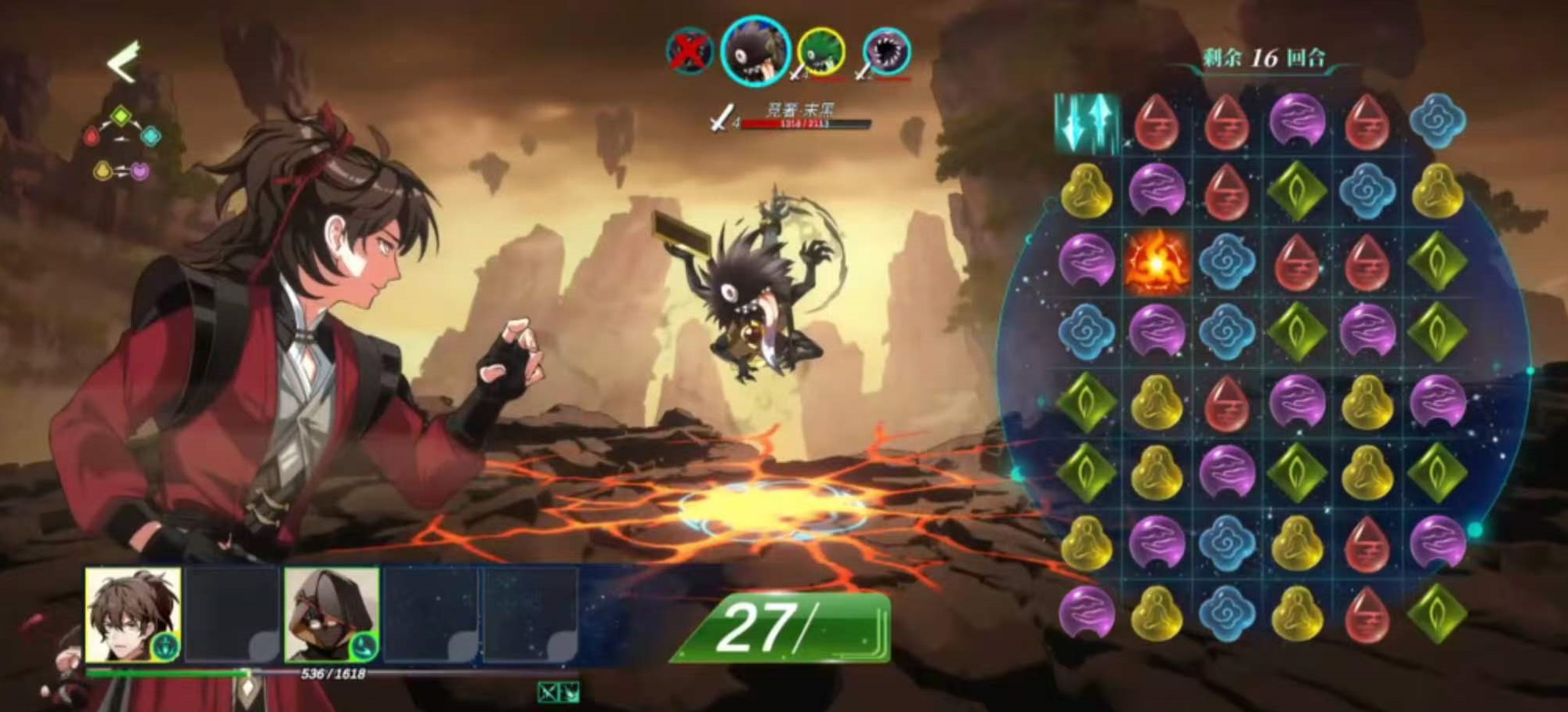 玩家在游戏中将执掌一卷残缺的《本茶纲目》,与由茶叶所化的茶元伙伴并肩同行。战斗采用三消驱动型卡牌对战模式:通过滑动消除积攒能量条,释放角色技能或触发高伤害必杀技。每位茶元按职能划分为辅助、输出、控场等类型,阵型搭配与元素共鸣可激活专属组合技。值得注意的是,游戏独创“茶性”体系替代传统元素概念——绿茶性寒、红茶性温、乌龙性平……不同茶性之间存在明确克制关系,直接影响技能效果与战斗节奏,大幅强化策略维度。