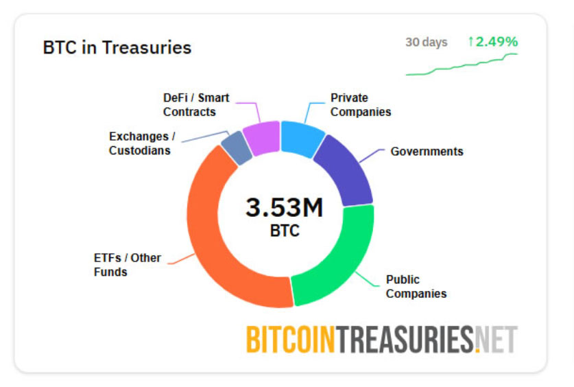 所有储备中持有的BTC。来源:BitcoinTreasuries.NET