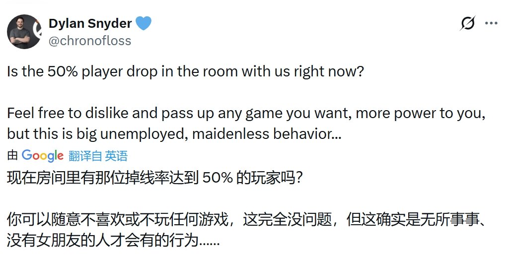 事件的导火索是一则声称《马拉松》因《杀戮尖塔2》和《宝可梦Pokopia》的发售而流失了50%玩家的帖子。对此,《守望先锋》高级设计师Dylan Snyder评论道:“你可以不喜欢或跳过任何游戏,这完全没问题。但(这种论调)是典型的没工作、没对象的行为。”