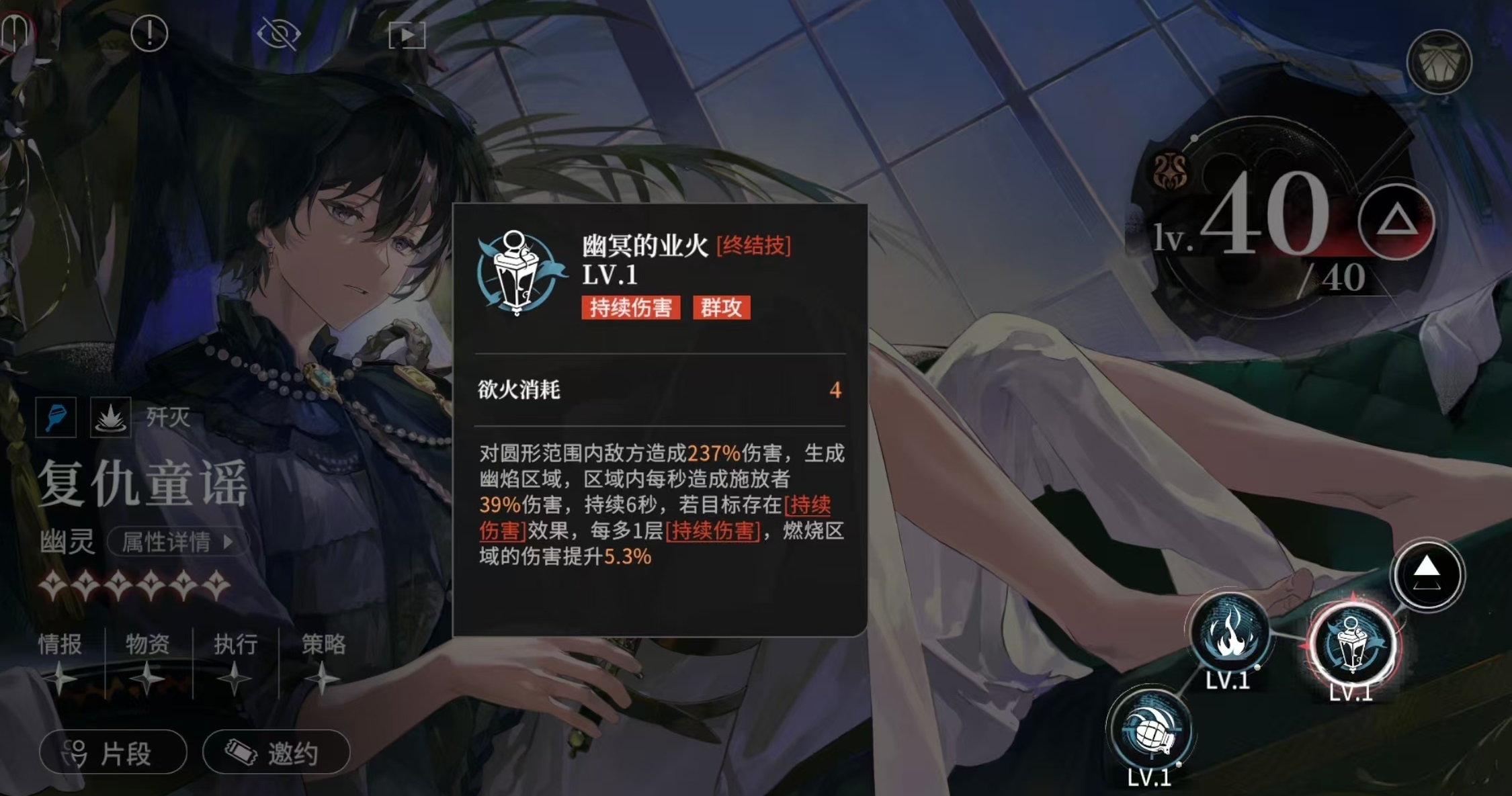 幽灵复仇童谣在队伍中固定占据2号位,属于典型的群攻型持续伤害输出者(DoT主C)。其人气居高不下,尤其受到新手玩家青睐,既是卡池常驻高光角色,也是中期过渡至后期主力的关键拼图。值得注意的是,该角色并非依赖单点爆发,而是通过范围压制与多层状态叠加实现伤害跃升,在节奏紧凑的战斗中具备极强的覆盖率和容错空间。
