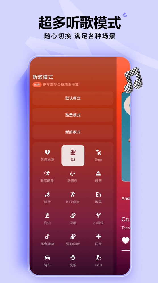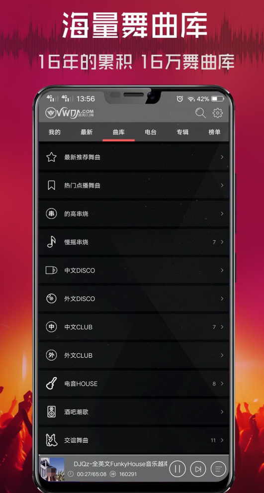 如果对劲爆的DJ曲目类型感兴趣的话,这里根据用户习惯推荐的每首音乐都让你嗨不停,各种流行曲目、中文串烧以及纯音乐制作人打造的热门DJ统统都有,还有着可比你演唱会同级别的音频优化技术,能将音乐的均衡度调整至非常高的听觉效果。