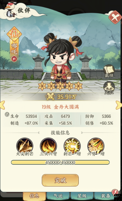 哪吒是很多角色玩家都喜欢的角色,在团队作战中能发挥强大的攻击能力,三头六臂技能可以将自身化身成为三头六臂,对敌人展开攻击,并对面前的敌人造成800%的伤害,在升星后会解锁新的增益技能,对敌人攻击时可额外造成三倍的攻击伤害,三头六臂可以在制造商品时增加出货的数量,也是玩家作为打工人的辅助技能,加工器材气运,可以在制作手串时提升自身的制作速度,这些技能可以帮助哪吒在工作中完成更多的任务。