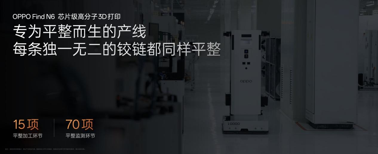 但即便0.1mm只是一根头发丝的厚度,依然没有达到OPPO对久用平整的追求。为了解决千变万化的0.1mm难题,OPPO突破了传统精密加工的瓶颈,带来行业首个芯片级高分子3D打印技术。该技术通过2μm超高精度光谱共焦扫描,明确每条铰链的起伏情况,再配合5pL级高分子3D打印、毫秒级固化的全流程工艺,抹平影响铰链平整的最后0.1mm,让折叠屏铰链的微型「天堑」变为「坦途」。OPPO甚至专为实现铰链平整打造了一条生产线,让每条独一无二的铰链都同样平整,真正做到千轴归一、千屏一效。