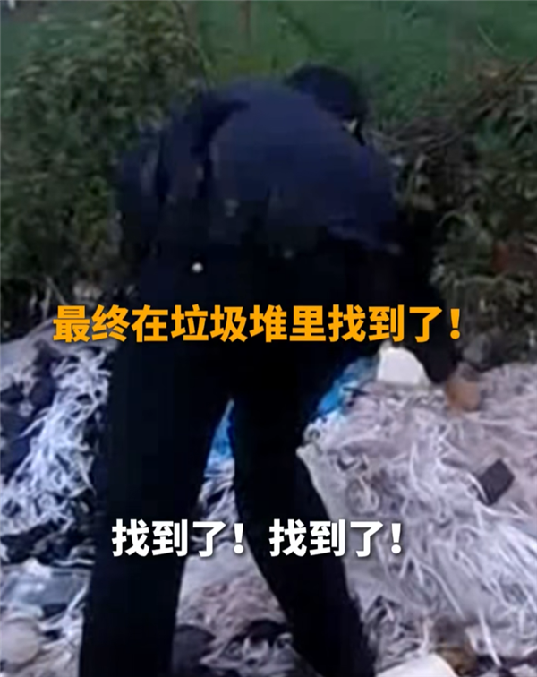 可小狗叼走手机后,便消失在了监控视野范围内,为找回手机,民警沿着周边区域仔细搜寻,先后排查了废弃房屋、小树林、河边及周边小巷等多处地点,最终在一处垃圾堆里找到了被小狗叼走的手机。