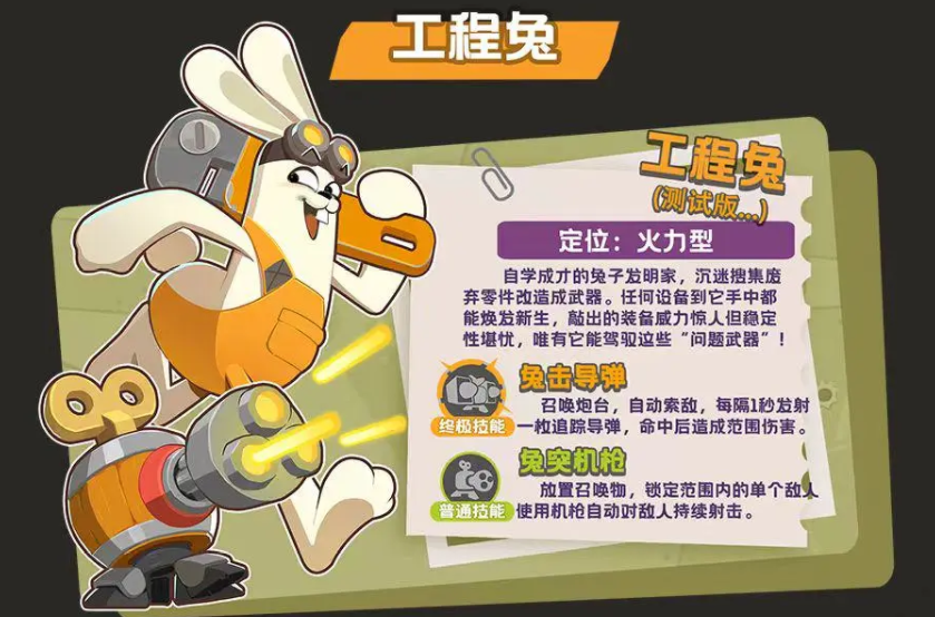 游戏里还要合理利用角色技能,工程兔是游戏里的火力型角色,挑战过程中能用机枪连续攻击对手,也可以发射的导弹造成追踪伤害,导弹的伤害范围会比枪械更大,嘎嘎鸭最擅长使用的就是滑铲和护目镜,滑铲大家已经掌握了,战术护目镜最主要的作用就是可以进入狂暴模式,能提升枪械射速,也能自动锁定离玩家最近的敌人,不用担心无法瞄准对手,战斗鸡适合作为游戏前锋,爆裂冲拳能快速向前方攻击,拳力风暴能给对手带来多段伤害,不管哪个的能力都非常优秀,玩家可以自由选择。