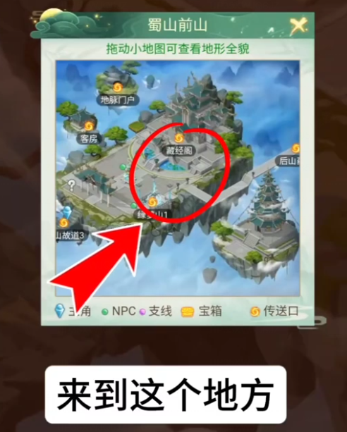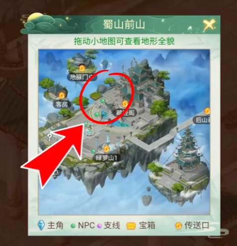 在完成对话后,点击右上角小地图中的传送,前往【蜀山前山】,寻找掌门徐长卿。
