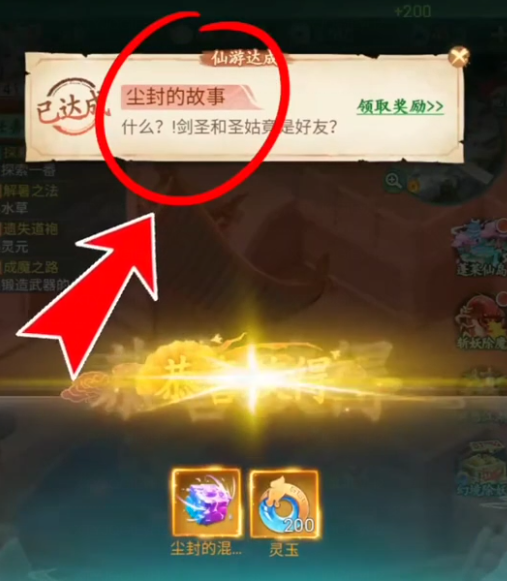 最终完成【隐藏成就:尘封的故事】,获得奖励:混沌秘宝*1、灵玉*200,同时获得成就奖励:红尘契*8、仙游点*20。