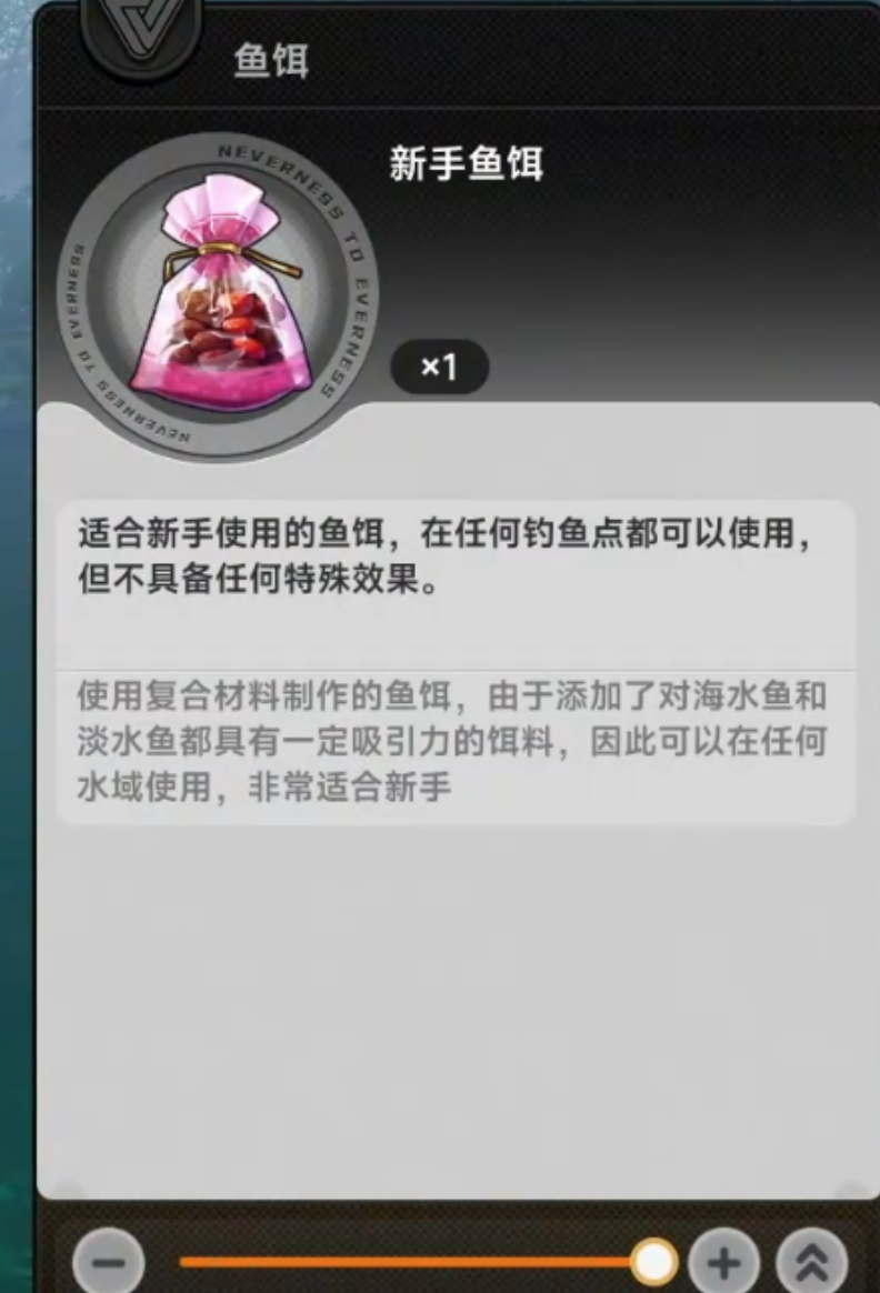 新手鱼饵是钓鱼系统的入门级配置,具备全水域兼容性,可同时用于淡水与海水环境。其配方为标准化复合型结构,融合多类基础诱食成分,无需区分钓点生态即可直接启用,大幅降低操作门槛。该饵料适用于尚未熟悉水域分布、鱼群图谱及时间机制的新手阶段,但不具备任何稀有鱼种加成效果,捕获率维持基础水平。建议将其作为教学过渡工具,在完成初期钓鱼流程训练后及时替换为场景化专用饵料。