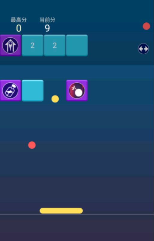 操作极简的物理弹射类单机游戏,老少皆宜。屏幕底部为可左右滑动的接球木板,中央区域有带数字标识的下落方块及弹跳小球。玩家需预判轨迹、实时调整木板位置,以弹射方式精准命中目标方块完成消除,节奏明快且具备显著解压效果。