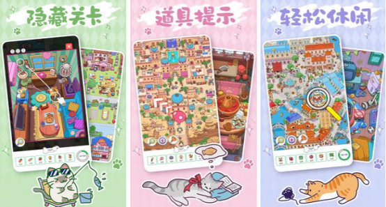主打细节观察与空间记忆的隐藏物品类单机游戏。场景丰富多元,涵盖公园、海滩等写实风格地图,每个画面中均藏有若干猫咪主题彩蛋,分布隐蔽、层次丰富。玩家需逐帧扫描、耐心比对,在有限时间内完成全部目标定位,锻炼专注力与图像识别能力。