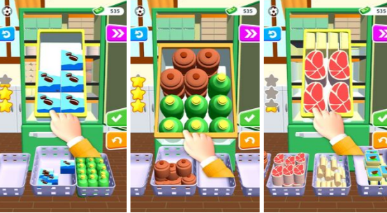 模拟收纳整理的轻策略单机游戏。开局界面堆叠牛肉、果蔬等各类食材,玩家通过点击拖拽将其分类归置进冰箱格位。核心玩法围绕空间规划与逻辑排序展开,目标是实现视觉整洁与功能分区合理,过程轻松治愈,兼具生活趣味性。