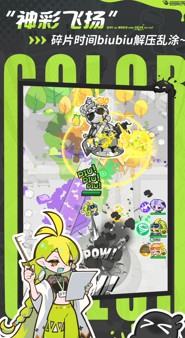 玩家不需要复杂的操作,只需要滑动手指,在关卡里就可以完成颜料喷溅、机关触发等动作,每局游戏只需要两分钟就可以完成,很好地符合了通勤、午休等短时间的娱乐需求。游戏中还有许多随机事件、趣味玩法,每次玩一次都会有不同的收获。快速、有效地让玩家在一个可以产生颜色和创造力的过程里获得体验,在操作时体会出色彩和创造力带来的乐趣。
