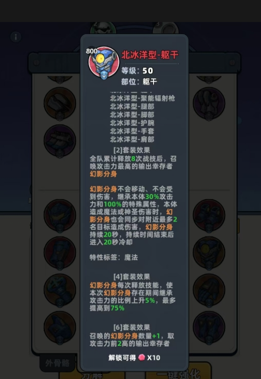 在套装框架确定后,词条精炼决定战力上限。词条优先级排序为:击回能>最后攻击>大招冷却>对BOSS增伤>对应流派增伤(物理/魔法/异能)>暴击率>暴击伤害。改造需遵循功能分区原则:核心部件优先洗练“大招冷却”词条,消除关键技能空档;项链位优先提升最终生命值,筑牢生存底线;主武器专注最终攻击词条;躯干与腿部则以回能效率为首要目标,保障技能链无缝衔接。