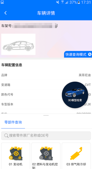 深度对接主机厂及一级供应商系统,实现103个汽车品牌、145个厂牌的数据直连。库存状态、终端零售价、订单交付周期等关键字段实时同步,确保所查即所得。支持破损配件图片上传,AI图像识别自动匹配OE号及适配型号;VIN解析精度达“一车一码”,单次调取即可获取OE编号、装配示意图、全系兼容车型等结构化信息,避免多次交叉验证。