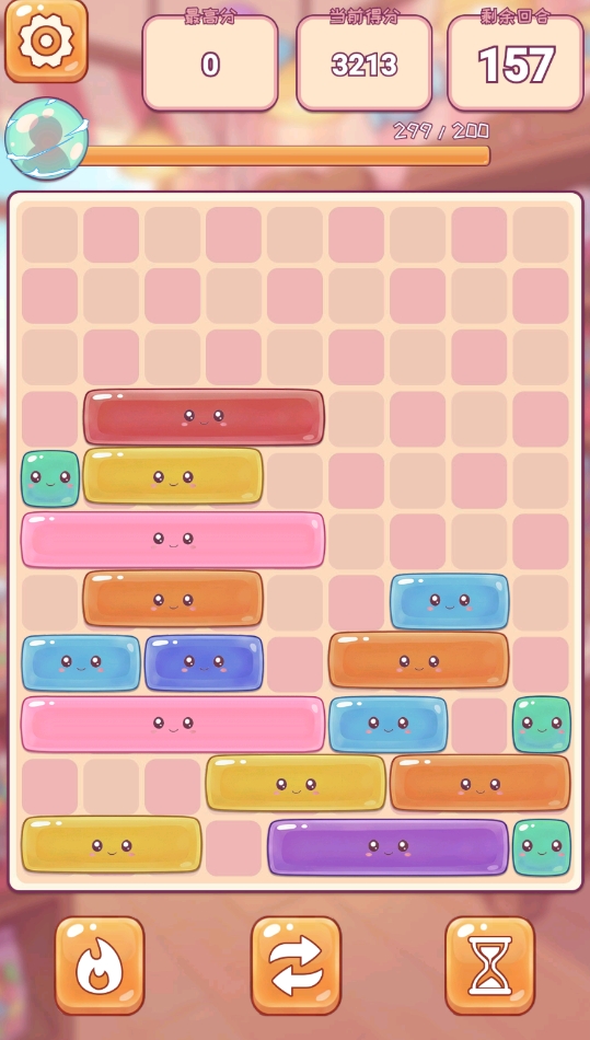 为缓解纯随机带来的挫败感,游戏内置三类功能性道具,分别对应不同困局场景。合理规划使用时机,能显著提升通关稳定性。此外,每次成功消除均会累积能量值,当能量达到200点时,可激活专属技能——指定清除某一行中连续长度的糖果方块。需注意:该技能对可消除糖果数量设有上限,且设定的连续长度越长,实际被清除的方块数量反而越少,这一反直觉设计进一步强化了策略深度。