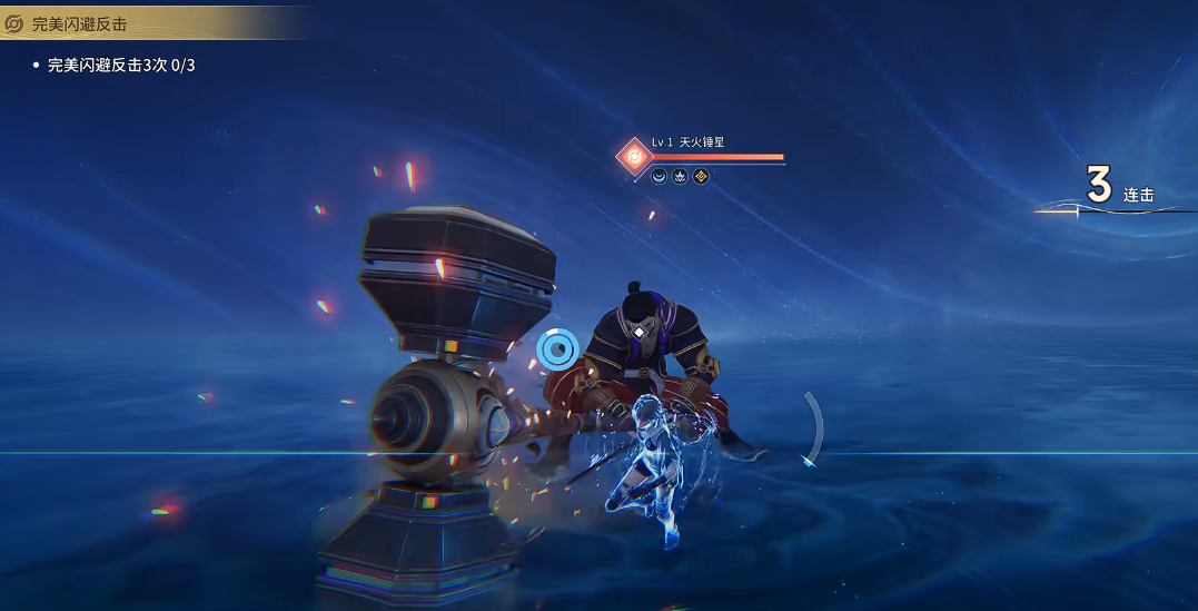 值得注意的是,闪反并非任意闪避都能触发。只有当角色进入“蓝色粒子状态”——即判定为完美闪避的视觉反馈出现时,才具备闪反条件。此时敌人攻击动作会出现明显减速,为玩家提供清晰的响应窗口。在此帧内按下普通攻击键,即可释放一道具象化的剑气,兼具实用性与表现力。